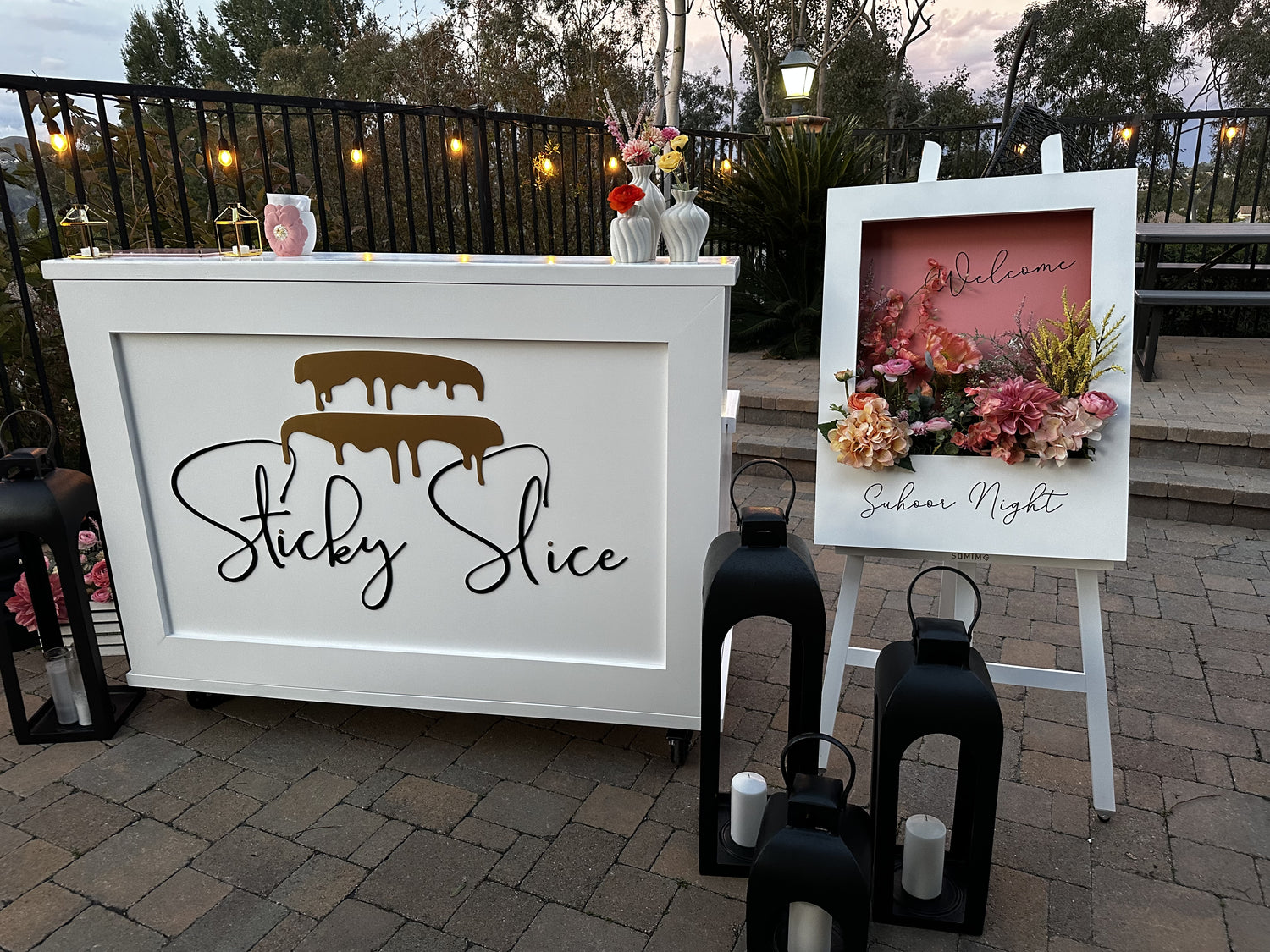 The Sticky Slice is a woman-owned dessert company based in Orange County. We specialize in indulgent gourmet desserts, centering around our sticky toffee pudding. We offer gift boxes, event catering and a stunning dessert cart service that will leave your guests buzzing with excitement. Our dessert cart offers our hot cakes covered in hot English salted toffee sauce and one of a kind garnishes. Our elegant presentation will elevate your event to the next level.